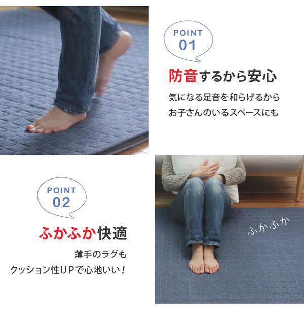 ■■■■■Sales Point&Spec■■■■■ お手持ちのラグにプラスするだけで、防音、ふかふか機能を追加できるラグ専用下敷。