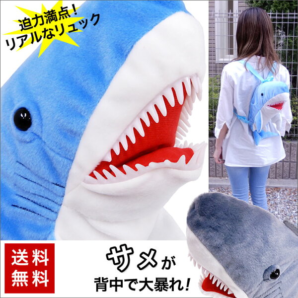 大人気のぬいぐるみバッグシリーズ ↓↓他にも色々扱っております↓↓ 特徴 おもしろデザイン!サメファンのためのリュック!! 街中で思わず目をひかれる、サメをかたどったぬいぐるみデザインのバックパックです。