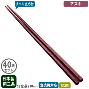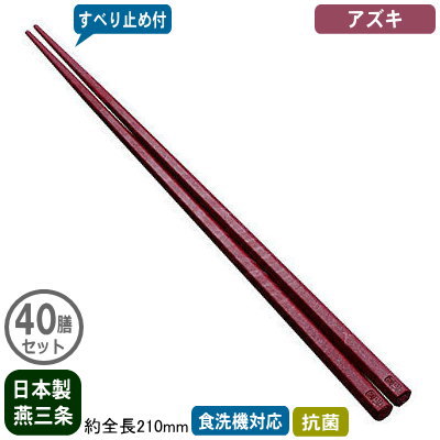 【箸 業務用 日本製 40膳組】抗菌 六角箸 すべり止め付き 21cm40膳セット アズキ【新潟県/燕三条/家庭用/はし/お箸/大人用/すべらない/滑らない/食洗機対応/耐熱温度 200℃/抗菌加工/繰り返し使える/エコ/和食/そば/ラーメン/飲食店/レストラン/食堂】