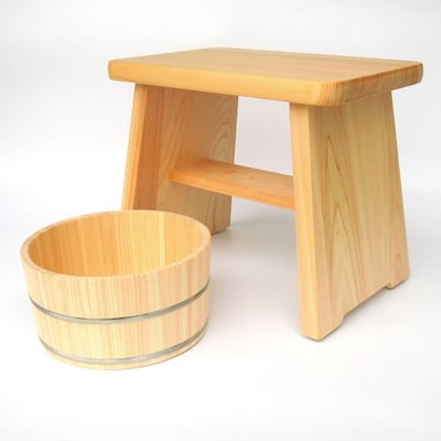 【ふるさと納税】【本格】ひのき風呂椅子・桶セット(デラックス30cmステンレスタガ)【1112047】