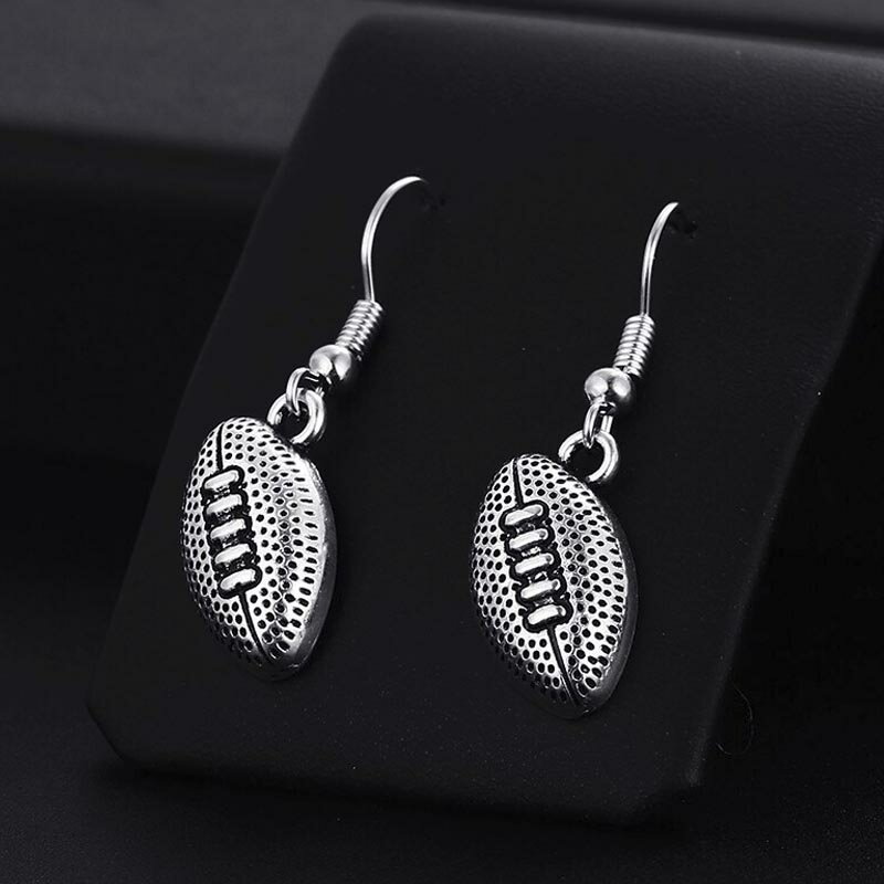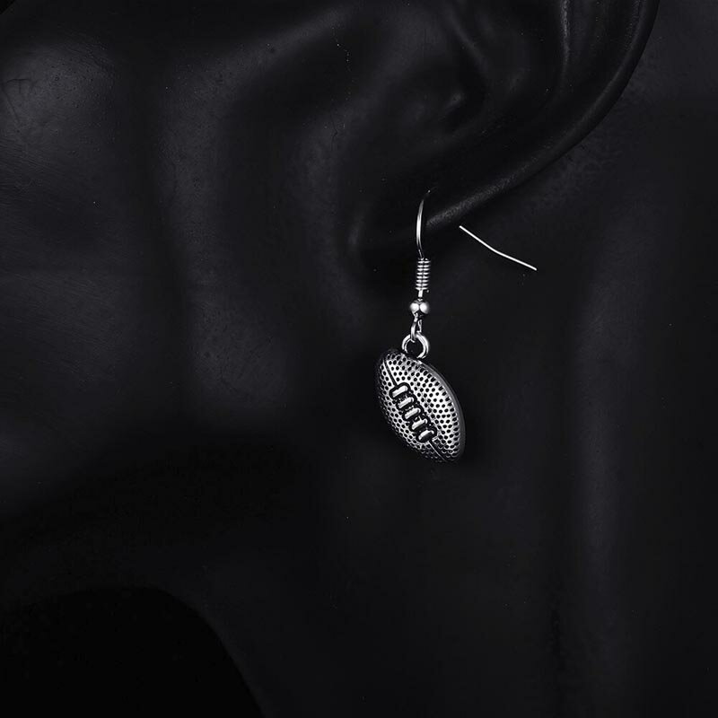 アメリカンフットボールやラグビーのボールをモチーフにしたチャーム揺れるフックタイプのステンレスピアス。
