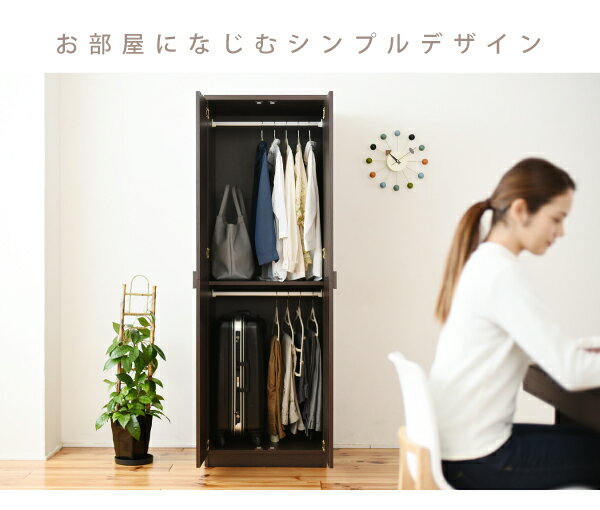 ■本体サイズ[外寸] 幅59.5×奥行53.5×高さ180cm■その他サイズ[内寸] (扉内)幅55×奥行48×高さ166cm (上段ハンガーバー)幅54.5×高さ(可動棚最上段)68.5〜(可動棚最下段)97.5cm (下段ハンガーバー)幅54.5×高さ(可動棚最上段)80〜(可動棚最下段)54.5cm(3.2cmピッチ10穴) (可動棚)幅55.5×奥行47.5×厚み1.7cm(3.2cmピッチ10穴)■材質[本体]プリント紙化粧合板■収納量・耐荷重【耐荷重】 [ハンガーバー]約12kg以下 [可動棚]約20kg以下 【ハンガーバー収納量】 [衣類]約20〜36着■備考・可動棚:1枚 ・六角レンチ同梱■生産国ベトナム■組立時間(目安)(大人2人)お客様組立(90分)■キーワードロッカー ブレザーダンス ロッカーダンス 収納 服 衣服 タンス 箪笥 たんす 整理 衣類の整理 家具 ワードローブ 洋服 ハンガーラック 服 収納 洋服ダンス 二段 天井 つっぱり 吊るす 組立式 60cm 幅 W60 H180 扉 壁面 収納家具 壁面収納 アイデア 収納術ひとり暮らし 一人暮らし 新生活 衣類の収納 洋服の収納 木製ハンガー ホワイト 白 ブラウン ダークブラウン ※イキトセレクトでは複数店舗にて在庫を共有しているため、ご注文のタイミングによって欠品・お取り寄せとなる場合もございます。