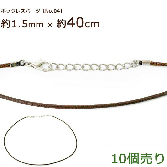 ネックレスパーツ【No.04】【10個売り】【約40cm】茶色 ブラウン カニカン アジャスター付き ペンダント チョーカー シルバー 革紐 革ひも フェイクレザー 合皮 編み コード パーツ バラ
