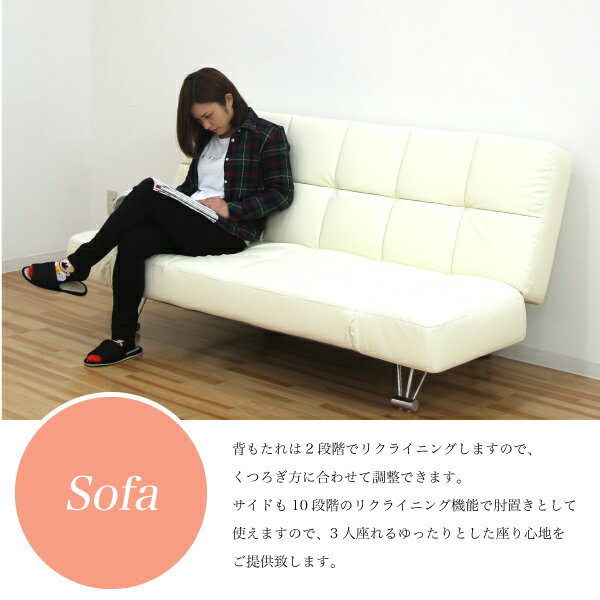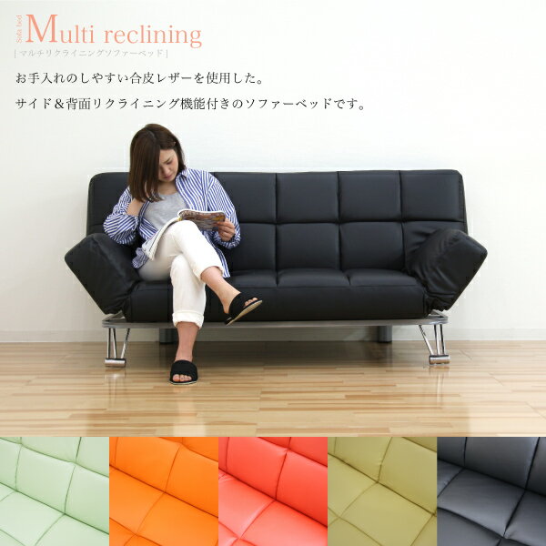ソファーベッド ソファ ベッド リクライニングソファ 3人掛けソファ リクライニング機能付き ブラック アイボリー オレンジ レッド イエロー 5色対応 合成皮革 北欧 シンプル モダン おしゃれ 完成品 送料無料